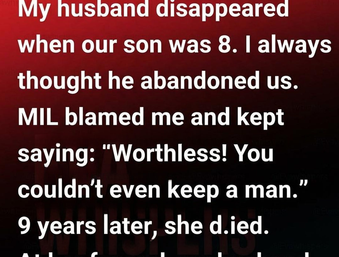 The day my husband disappeared, he left without a note, a goodbye, or even an explanation. One morning I woke to find his clothes gone, his work files missing, and every trace of him quietly erased from our home. Our eight-year-old son stood in the hallway asking where his father was, and I had no answer for him. At first, I believed there had to be some mistake—that surely he would call, return, or explain. But days turned into weeks, and weeks into years. The silence remained. His mother, instead of offering comfort, made certain I carried the blame. She insisted I had driven him away and treated his absence like proof of my failure. So I raised our son alone, working long hours, carrying heartbreak in silence, and learning how to survive without the closure I desperately needed.
